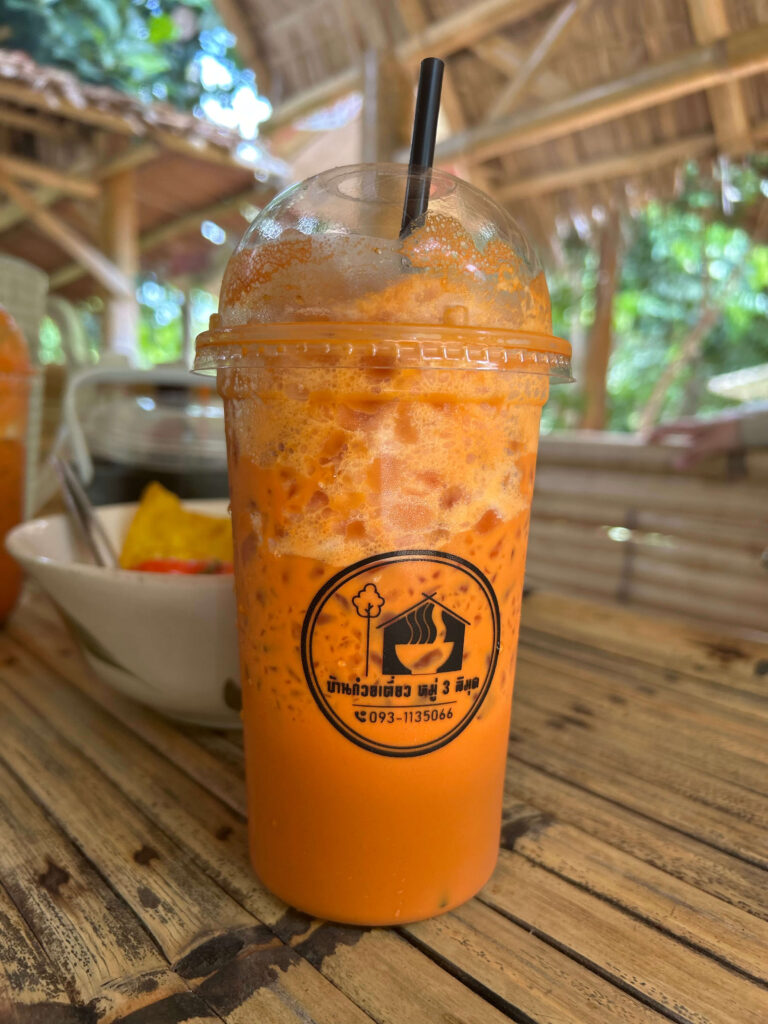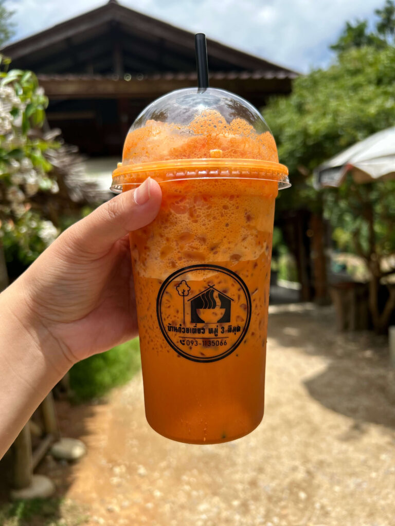 ส่วนเครื่องดื่ม “ชาเย็น” ของที่นี่ก็เข้มข้นถึงใจคอชาเย็นแน่นอนครับ รสชาติหอมหวาน มันกลมกล่อม ทานคู่กับก๋วยเตี๋ยวต้มยำรสจัดจ้าน คือเข้ากันอย่างไม่น่าเชื่อครับ!