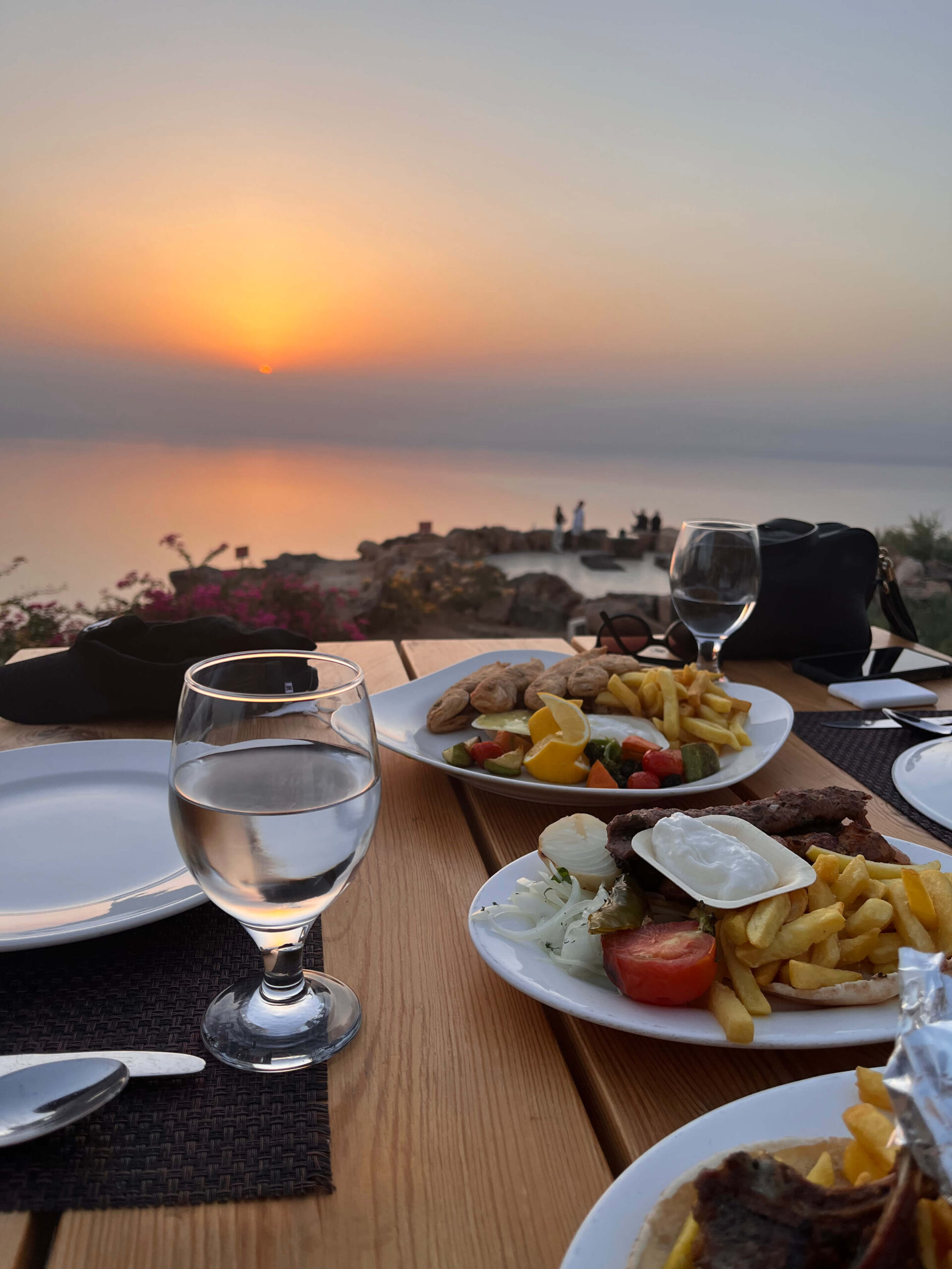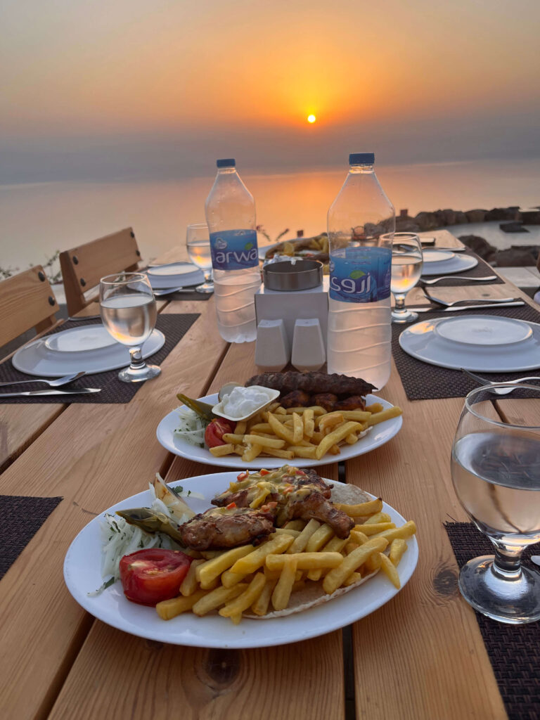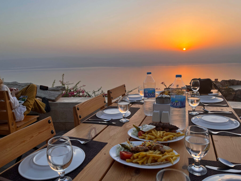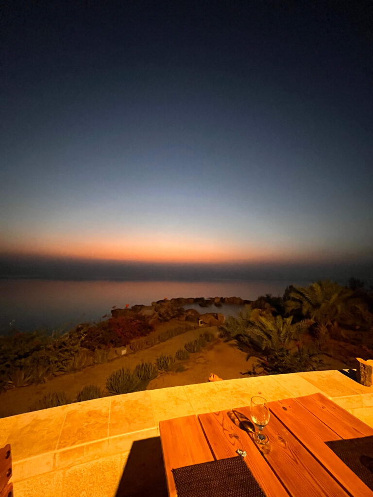 ลองนึกภาพการนั่งทานมื้อค่ำรสเลิศ ท่ามกลางลมเย็นๆ บนหุบเขา โดยมีฉากหลังเป็นแสงไฟระยิบระยับจากฝั่งประเทศเพื่อนบ้านและเสียงความเงียบสงบของทะเลเดดซี บอกเลยว่านี่คือการจบวันของการเดินทางที่สมบูรณ์แบบที่สุดครั้งหนึ่งของ สาระรีฟ เลยครับ